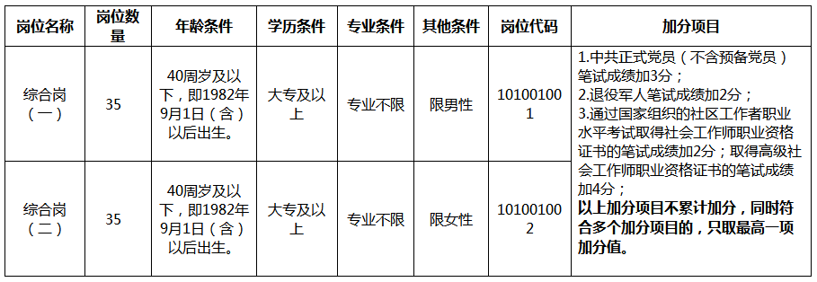 本次公开招聘社区工作者(专职网格员)70人。