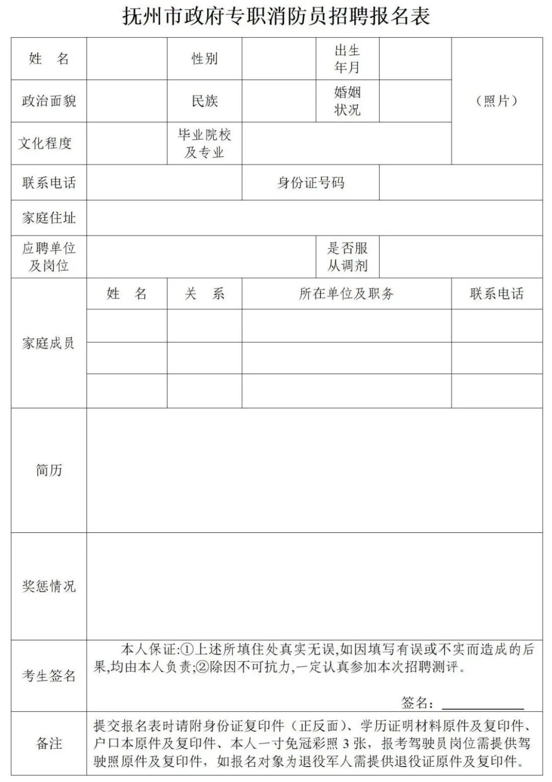 1.抚州市政府专职消防员招聘报名表